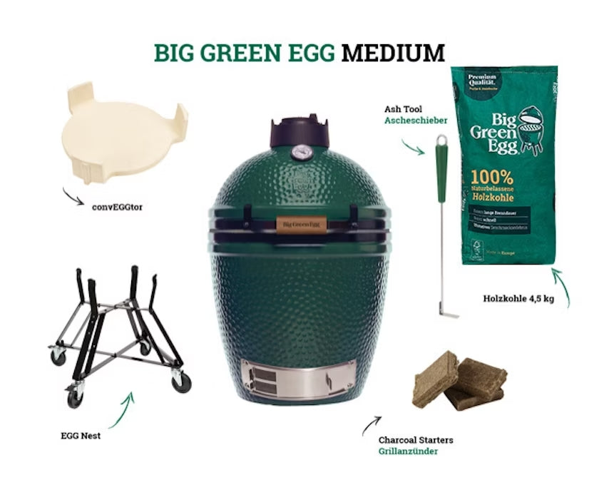 Das Big Green Egg Medium ist kompakt genug für kleine Stadtgärten, Terrassen oder Balkone, aber auch groß genug zum Grillen, Räuchern, Garen oder Backen von leckeren Gerichten für sechs bis acht Personen. Mit dem Medium im Garten sollten Sie sich regelmäßig Freunde und Familie einladen, damit sie in geselliger Runde genießen können. Nicht zuletzt deshalb gehört dieses EGG zu unseren beliebtesten Modellen. Mit dem passenden convEGGtor und dem Back- und Pizzastein verwandeln Sie das Big Green Egg Medium im Handumdrehen in einen Pizzaofen, der Sie und Ihre Gäste mit den leckersten, hausgemachten Pizzen verwöhnen wird. Dieses EGG heißt zwar Medium, aber es ist alles andere als mittelmäßig!