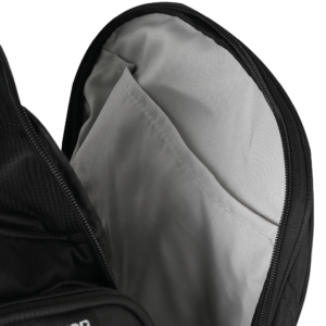 Aber es gibt noch mehr ins Auge springende und versteckte Aufbewahrungsmöglichkeiten. Das Hauptfach hat innen auf beiden Seiten praktische Seitenfächer. Außen an diesem original Big Green Egg-Rucksack befindet sich ein großes Vorderfach mit Schlüsselanhänger und drei zusätzlichen Seitenfächern mit Reißverschluss. Darüber hinaus ist der Rucksack mit einer praktischen Kopfhörer-Öffnung versehen.