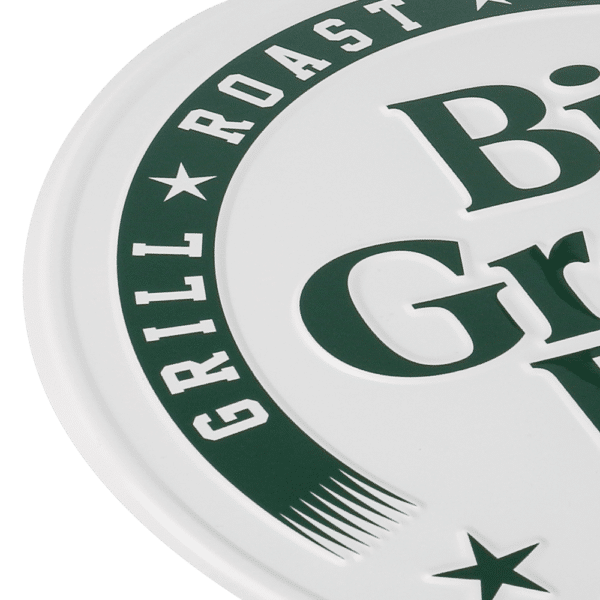 Du verfügst über eine schöne Outdoorküche für dein Big Green Egg oder planst die Einrichtung einer solchen? Dann solltest du die Ausstattung nicht vergessen! Diese witzige Texttafel aus Aluminium zeigt, welche Kochtechniken du beherrscht: Grill * Roast * Smoke * Bake. Ferner wird angegeben, wann die Big Green Egg Inc. gegründet wurde: Est. 1974. Du bist Besitzer eines echten Originals! Darauf kannst du stolz sein. Die Big Green Egg-Texttafel hat zwei Befestigungspunkte zum Aufhängen.